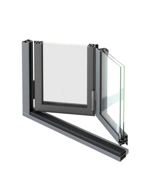 La porte en accordéon Janisol est fabriquée en profilés en acier avec isolation thermique.