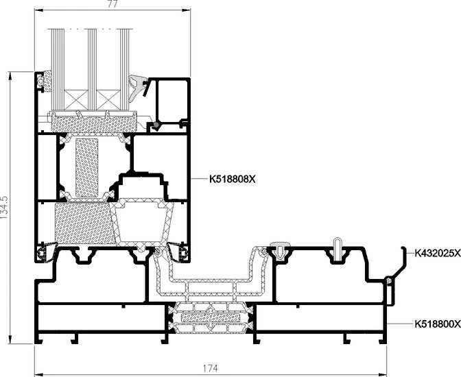de fabriquer des portes angulaires à 90 et 270 degrés avec un meneau mobile. Un large choix de remplissages est disponible, permettant d’appliquer des vitrages à une et deux chambres, des intercalaires thermiques et des accessoires supplémentaires.