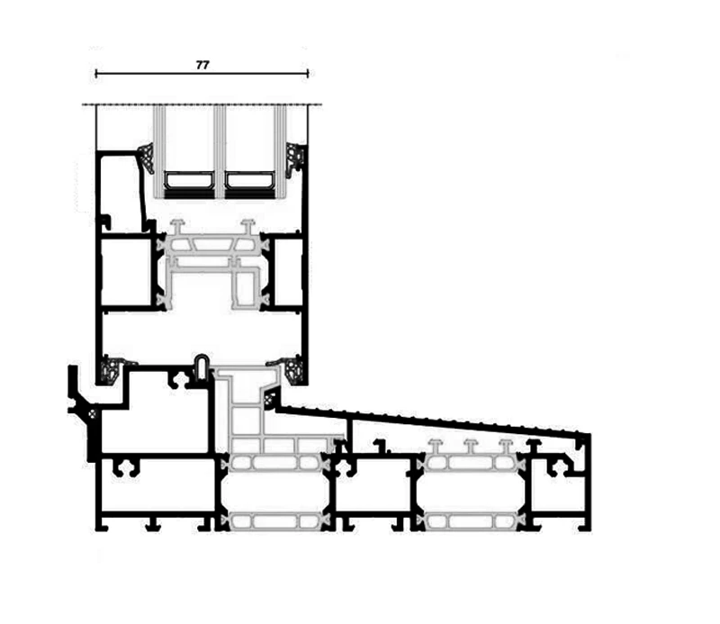 - monorail – dormant à un rail avec vitrage de l’extérieur et de l’intérieur,