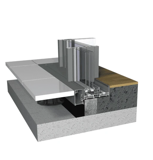seuil caché par un profilé de protection ou par le même matériau que le sol