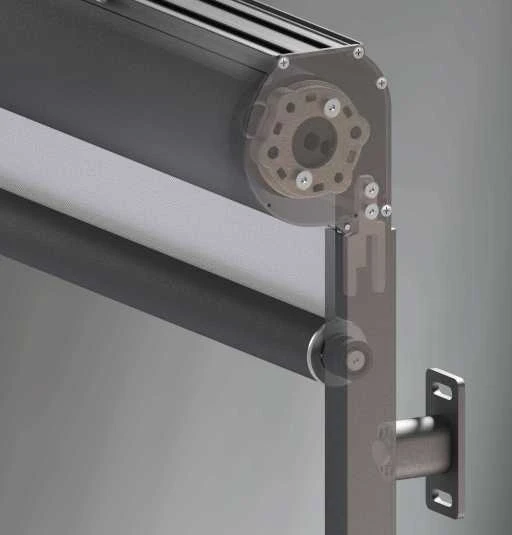 Tissu lisse en polyester avec une finition PVC. La structure du tissu permet de bloquer efficacement les rayons du soleil et d'avoir un coefficient optimal de transmission de la lumière visible, en assurant aux utilisateurs des pièces un haut confort d'utilisation.