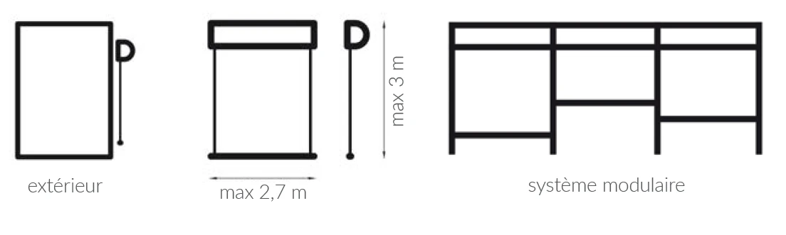 • Coulisses en aluminium extrudé ou câble en acier inoxydable