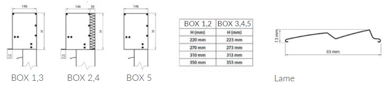 • Coffres BOX 1 et BOX 2 encastrables en aluminium extrudé, disposant d’une moulure en tôle aluminium permettant de réaliser le plâtrage extérieur