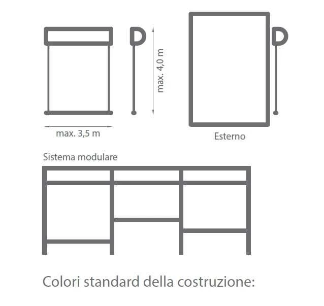 Tessuto liscio in poliestere rivestito in PVC. La struttura del tessuto consente di bloccare efficacemente i raggi solari e di ottenere un ottimo coefficiente di trasmissione della luce visibile, garantendo un elevato livello di comfort per gli utenti della stanza.