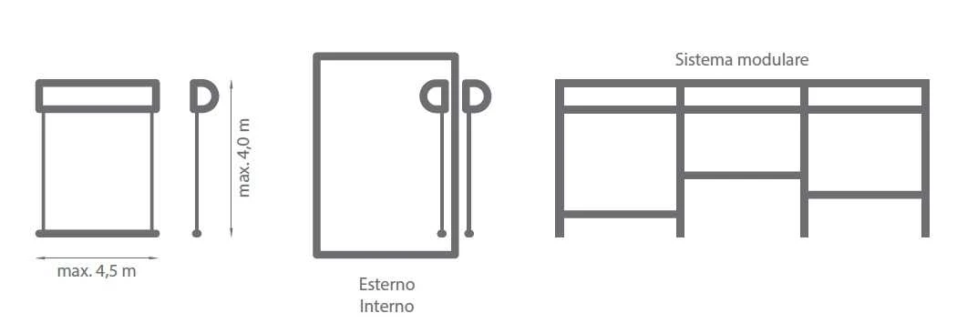| Guide a cavo – esterno • larghezza massima • altezza massima |