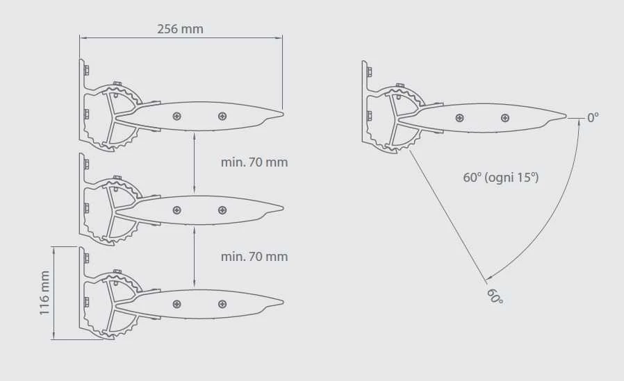 - Possibilità di regolazione delle lamelle da 0° a 60° (a intervalli di 15°)