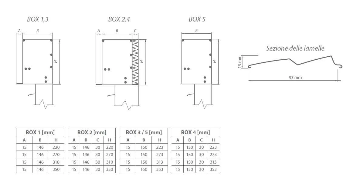 • Il cassonetto BOX 5 è completamente verniciato e non presenta il supporto per l’intonaco sulla parte anteriore del cassonetto.
