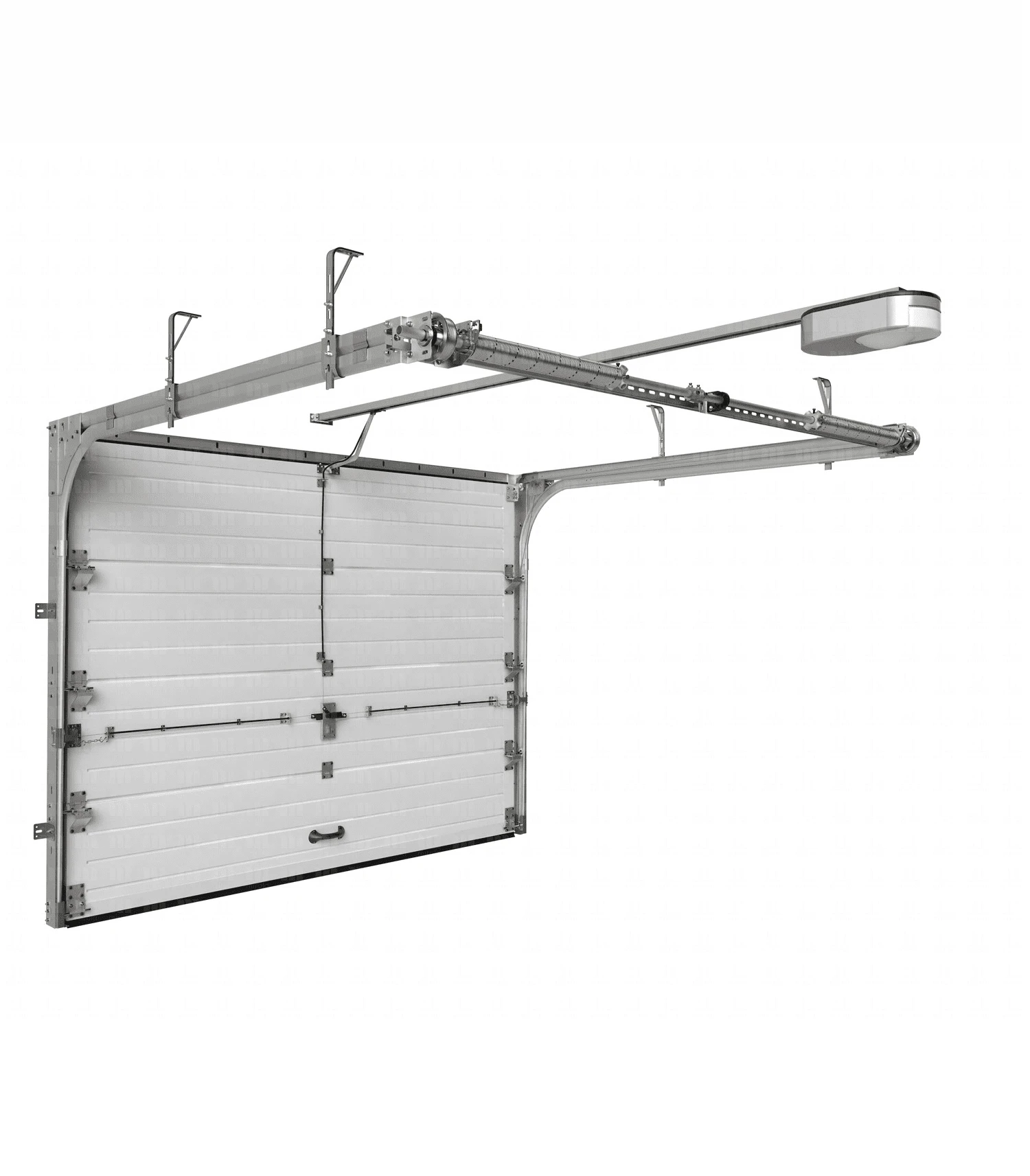 Brama o prowadzeniu niskim stosowana jest wszędzie tam, gdzie nie mamy miejsca montażu bramy w standardowym prowadzeniu. Wymagana wysokość nadproża w prowadzeniu niskim to zaledwie 80mm przy ręcznym sterowaniu bramy oraz 150 mm przy zastosowaniu napędu elektrycznego – Somfy/Nice. Charakterystyka produktu: wał i sprężyny skrętne zamontowane z tyłu podwójnych prowadnic poziomych.