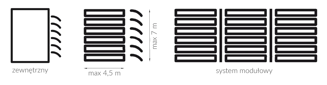 • System montowany do zewnętrznej konstrukcji nośnej fasady