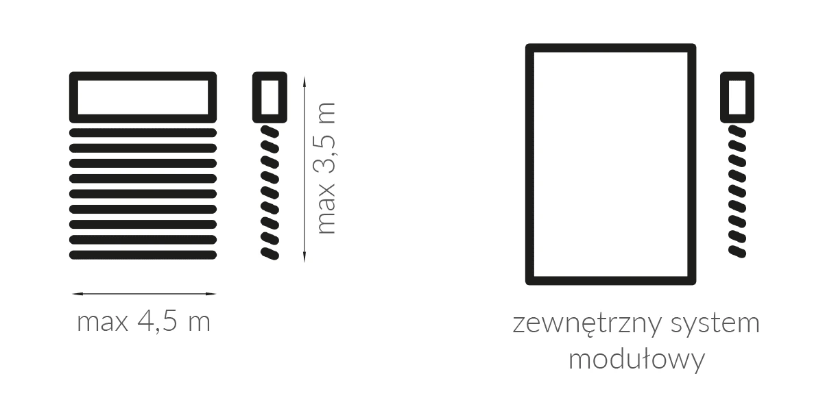 • System samonośny gdzie skrzynka wsparta jest na prowadnicach