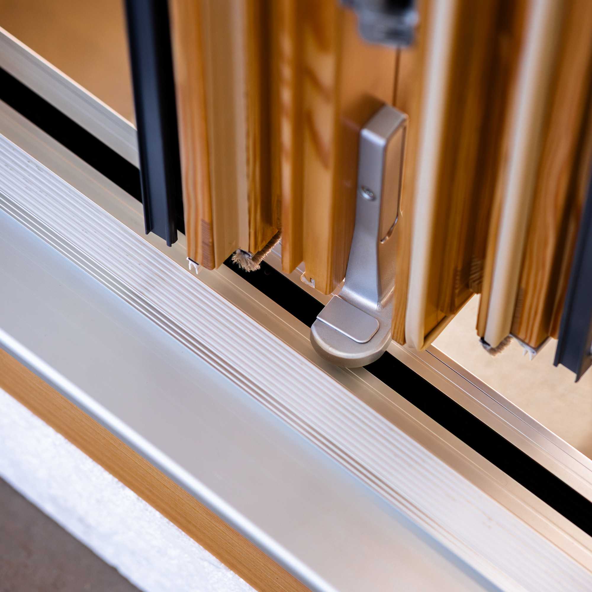 Skrzydło ruchome nie otwiera się tradycyjnie „do środka” jak drzwi balkonowe, tylko przesuwa się równolegle po prowadnicy. Przy otwieraniu podnosi się lekko do góry, a potem płynnie przesuwa w bok.